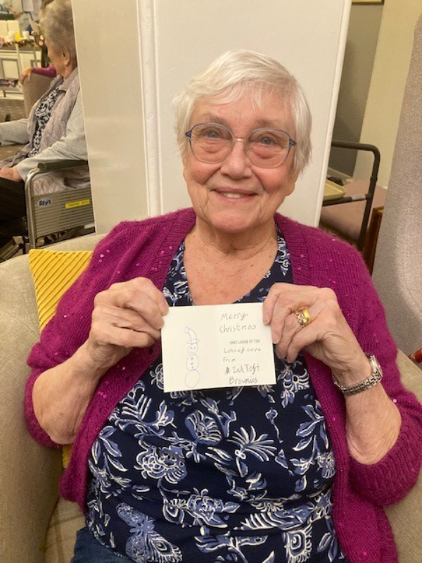 The girls filled the home with festive cheer, performing a wonderful selection of Christmas carols and seasonal songs for residents to enjoy. Their visit didn’t stop at music – the Brownies also thoughtfully delivered handmade Christmas cards, bringing smiles and joy to everyone who received one.